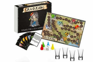 GRA O ZGON - towarzyska gra alkoholowa z elementami fabularnymi. Siedem królestw potrzebuje nowego króla! Każdy krok na drodze do władzy jest także krokiem przybliżającym Cię do zgonu. Czy wystarczy Ci sił aby zasiąść na Zgonowym Tronie? W drodze do tronu przejmuj władzę w zamkach, rzucając wyzwanie każdemu kto wkroczy na Twoją posiadłość. Gra o Zgon to idealna propozycja dla tych, którzy cenią sobie dobrą zabawę i nie boją się nowych wyzwań. Impreza z tą grą zostanie zapamiętana na długo!