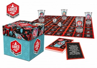 SKŁAD PUDEŁKA: karty z poleceniami, karty z zadaniami karnymi, kieliszko-flaszki, ALKO-MON do rzucania w kieliszko-flaszki.