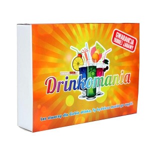 Zawiera: planszę, 20 kart, 4 kieliszki z miarką, 2 kostki