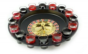 Zestaw zawiera ruletkę z tarczą wykonaną z plastiku, , 16 szklanych kieliszków, oznaczonych kolorami: czarnym i czerwonym oraz 2 plastikowe kulki.